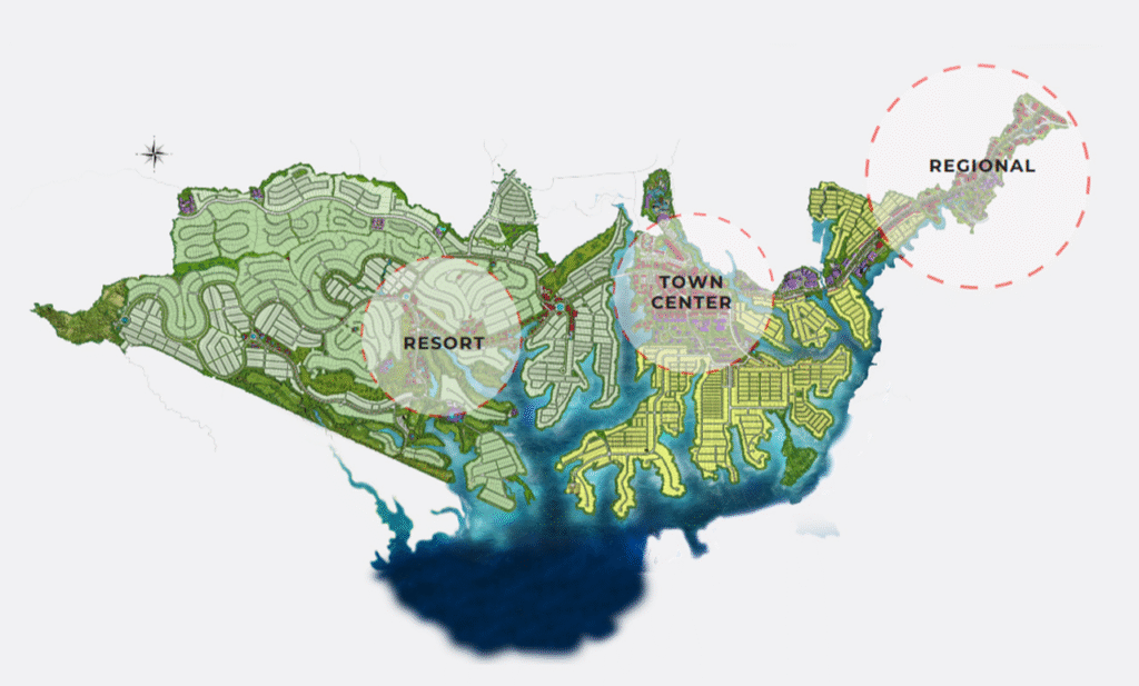 Kota Baru Parahyangan mengembangkan kawasan sentra ekonomi yang secara strategis dibagi atas zona; Regional Komersial, Town Center, dan Resort Komersial